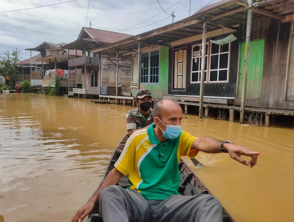 Babinsa Koramil 03/Tjg Serka Harianto menjelaskan, dengan menggunakan perahu kami bersama Lurah Tanjung tadi melakukan peninjauan. Sekaligus mengimbau warga agar terus waspada dan bersiap mengungsi ketempat yang lebih aman apabila kondisi air semakin naik.